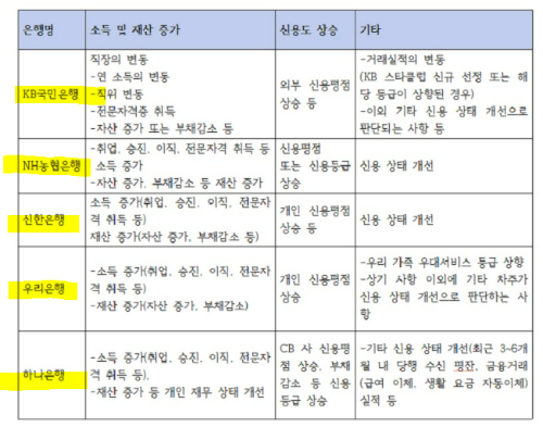 차주가 신용상태 개선이 있는 경우, 은행이 정하는 절차에 따라서 금리의 인하를 요구하고 Yes OR No로 통보받을 수 있습니다.