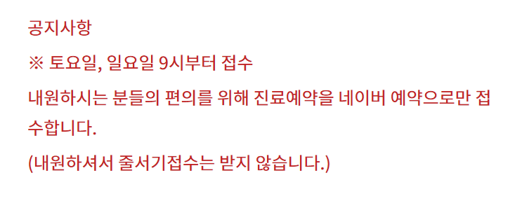 - 일부 진료는 홈페이지나 카카오톡 상담을 통해 예약 가능