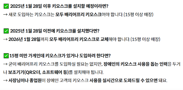 2025년 1월부터 '배리어프리 키오스크' 설치가 법으로 의무화된 거예요.