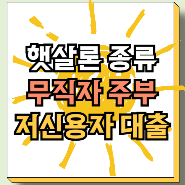| 일반 햇살론 | 저신용자, 저소득층 | 최대 1,500만 원 | 약 10% | 3~5년 | 서민 생활 안정 자금 지원 |