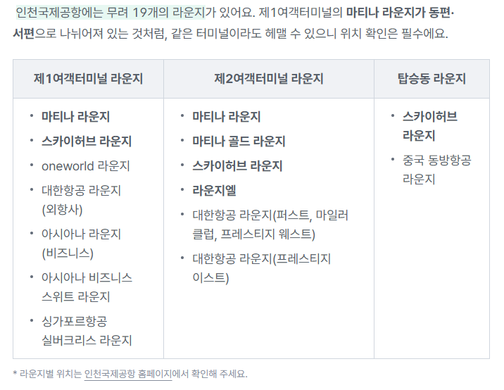 인천공항 라운지 편안한 여행을 위한 필수 공간