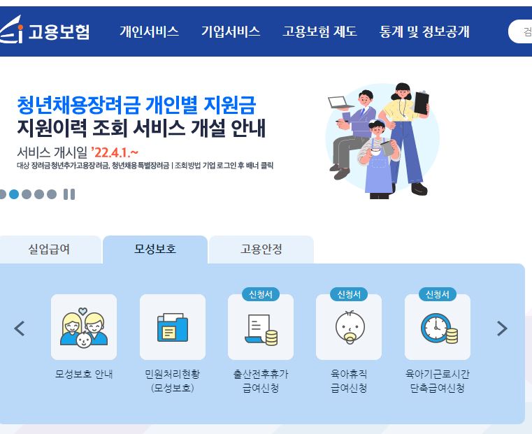 고용보험 사이트 출산휴가급여 온라인신청 방법