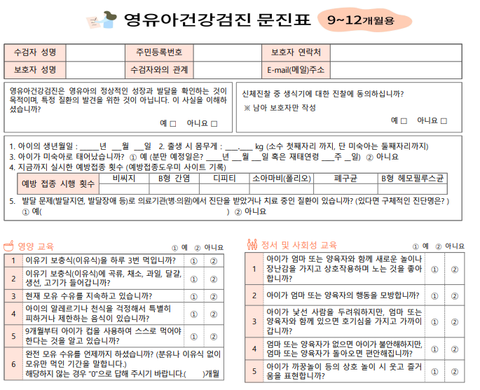 | 2차 영유아검진 문진표 (4~6개월용) (0) | 2025.09.22 |